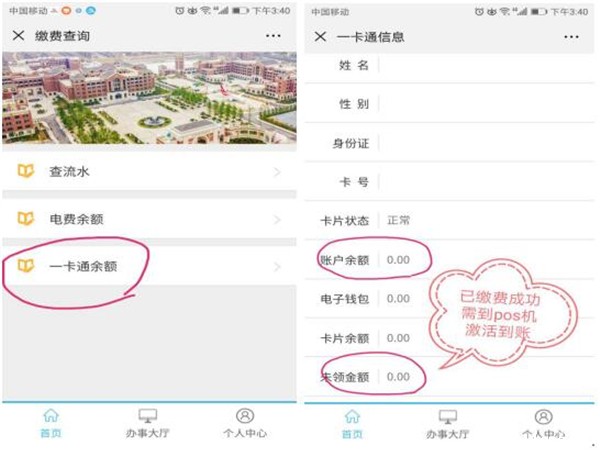 第三步:查询一卡通余额